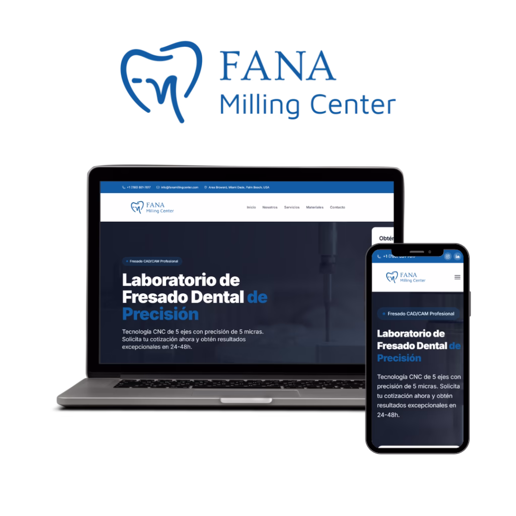 Desarrollamos esta plataforma web corporativa para FANA Milling Center, un laboratorio especializado en Fresado Dental de Precisión. El objetivo del proyecto fue establecer una presencia digital robusta que comunicara la alta tecnología y la confiabilidad del servicio. La arquitectura del sitio fue diseñada full responsive, garantizando una experiencia de usuario óptima tanto en escritorio como en dispositivos móviles.